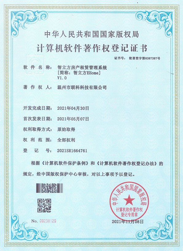 聯(lián)科教培行業(yè)智慧運(yùn)營(yíng)系統(tǒng)V1.0登記證書(shū)(2022R11L2324133)