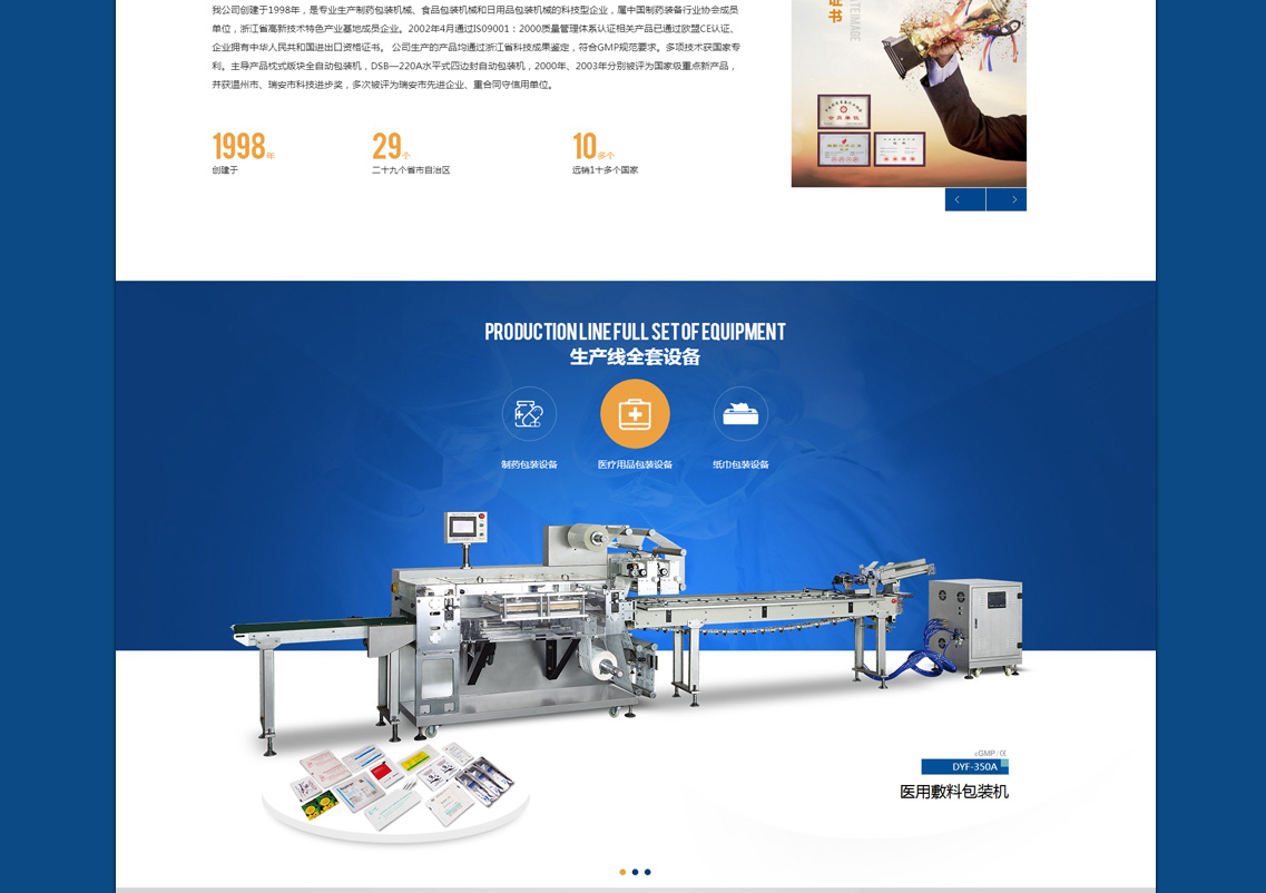 我公司創(chuàng)建于1998年,是專業(yè)生產(chǎn)制藥包裝機(jī)械、食品包裝機(jī)械和日用品包裝機(jī)械的科技型企業(yè),屬中國制藥裝備行業(yè)協(xié)會(huì)成員單位,浙江省高新技術(shù)特色產(chǎn)業(yè)基地成員企業(yè)。2002年4月通過IS09001:2000質(zhì)量管理體系認(rèn)證相關(guān)產(chǎn)品已通過歐盟CE認(rèn)證、企業(yè)擁有中華人民共和國進(jìn)出口資格證書。