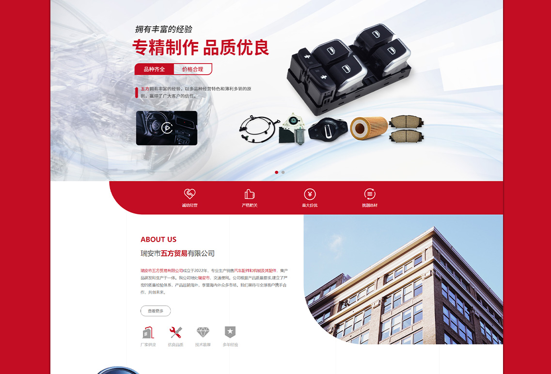 瑞安市五方貿(mào)易有限公司成立于2022年,專業(yè)生產(chǎn)銷售汽車配件和機(jī)械及其配件,集產(chǎn)品研發(fā)和生產(chǎn)于一體。我公司地處瑞安市,交通便利。公司根據(jù)產(chǎn)品質(zhì)量要求,建立了嚴(yán)密的質(zhì)量檢驗(yàn)體系,產(chǎn)品遠(yuǎn)銷海外,享譽(yù)海內(nèi)外眾多市場(chǎng)。我們期待與全球客戶攜手合作,共創(chuàng)未來(lái)。