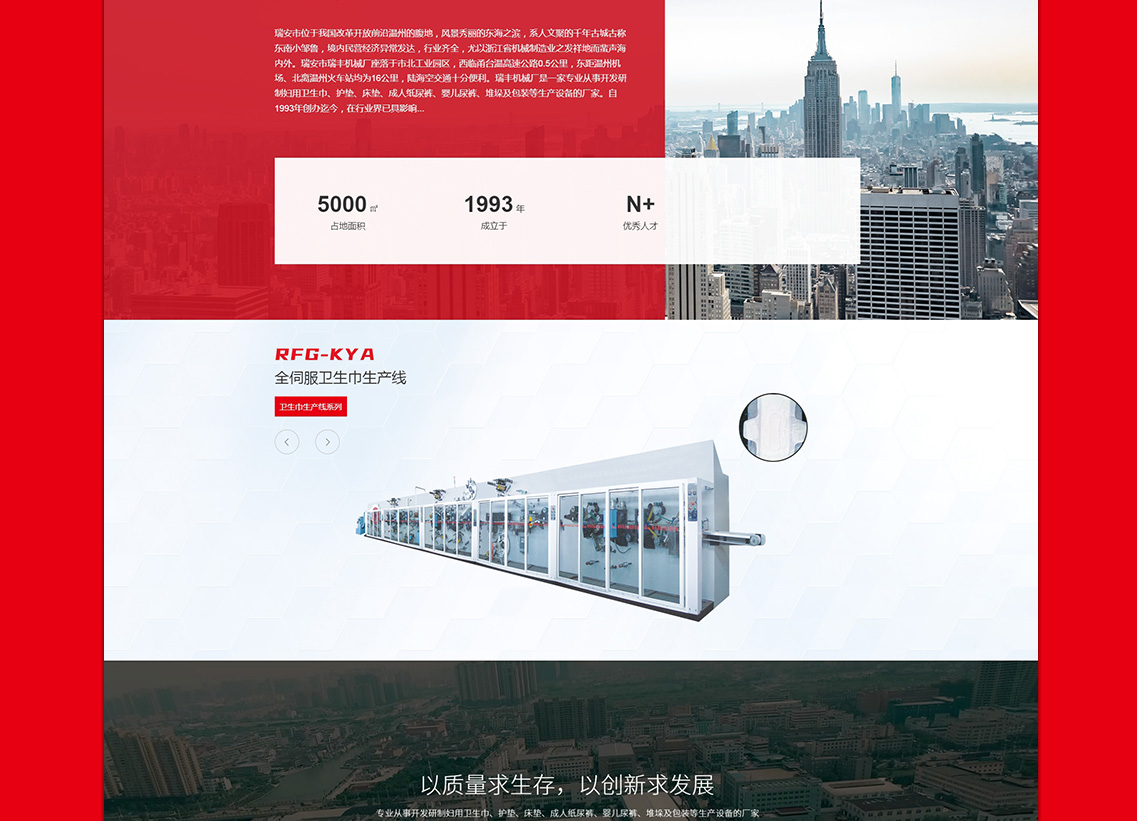 瑞安市位于我國(guó)改革開放前沿溫州的腹地,風(fēng)景秀麗的東海之濱,系人文聚的千年古城古稱東南小鄒魯,境內(nèi)民營(yíng)經(jīng)濟(jì)異常發(fā)達(dá),行業(yè)齊全,尤以浙江省機(jī)械制造業(yè)之發(fā)祥地而蜚聲海內(nèi)外。瑞安市瑞豐機(jī)械廠座落于市北工業(yè)園區(qū),西臨甬臺(tái)溫高速公路0.5公里,東距溫州機(jī)場(chǎng)、北離溫州火車站均為16公里,陸??战煌ㄊ直憷?。瑞豐機(jī)械廠是一家專業(yè)從事開發(fā)研制婦用衛(wèi)生巾、護(hù)墊、床墊、成人紙尿褲、嬰兒尿褲、堆垛及包裝等生產(chǎn)設(shè)備的廠家。自1993年創(chuàng)辦迄今,在行業(yè)界已具影響。我廠廠區(qū)占地面積約5000多平方米,生產(chǎn)車間標(biāo)準(zhǔn)、規(guī)范、配套設(shè)備齊全,