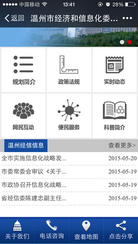 該公眾平臺主要分為三大版塊,分別是“智慧專題”“便民服務(wù)”和“微官網(wǎng)”。其中,便民服務(wù)可為市民提供一站式的綜合服務(wù),涉及與市民生活息息相關(guān)、社會關(guān)注度高的醫(yī)院掛號預(yù)約、交通出行、旅游資訊、社保查詢、市民卡查詢,出入境證件辦理查詢、房產(chǎn)證登記辦理查詢、土地證登記查詢、公積金查詢、中考錄取查詢、溫州市圖書館借閱查詢……目前,該平臺的“便民服務(wù)”一欄已匯集了33項便民信息化服務(wù)。