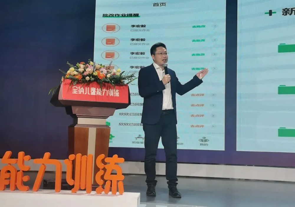 在發(fā)布會(huì)開(kāi)場(chǎng),全納總裁翁亦奇老師首先上臺(tái)致辭,對(duì)于本次品牌升級(jí)發(fā)布會(huì)做出了肯定,表明品牌的設(shè)計(jì)方式是在傳承全納理念和文化的基礎(chǔ)上,變得更加的時(shí)尚,更加有調(diào)性。同時(shí)將結(jié)合全納課程的特點(diǎn),做出適合全納的教學(xué)管理體系。闡述了在雙減政策下打造中國(guó)兒童能力訓(xùn)練與素質(zhì)教育大品牌的機(jī)遇和決心!