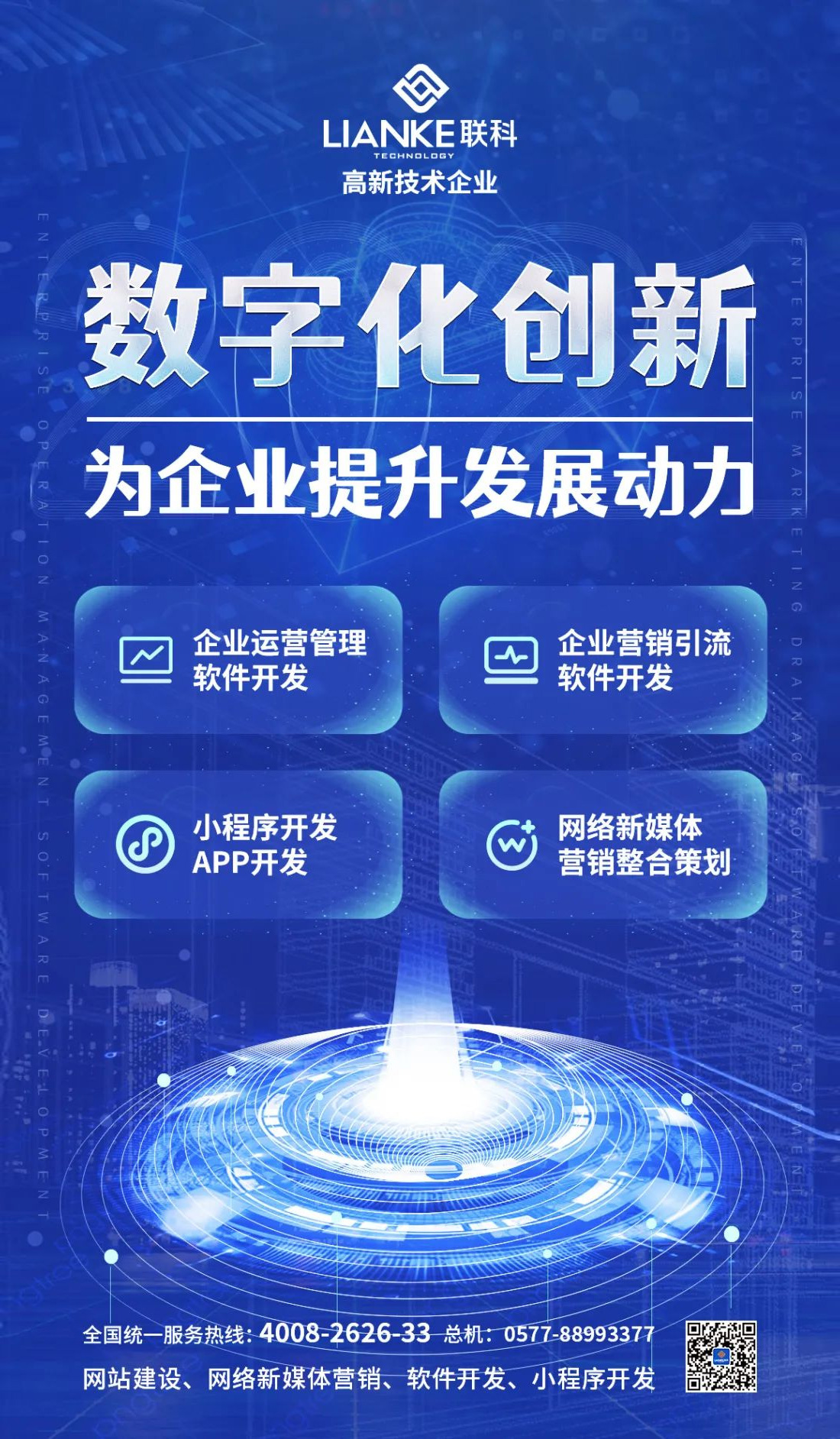 溫州市聯(lián)科科技有限公司成立于2002年,主要從事互聯(lián)網(wǎng)應(yīng)用軟件開(kāi)發(fā)和網(wǎng)絡(luò)營(yíng)銷策劃推廣,業(yè)務(wù)包括網(wǎng)站開(kāi)發(fā)、小程序開(kāi)發(fā)、APP開(kāi)發(fā)、新媒體(微信、抖音、百度)整合營(yíng)銷策劃、外貿(mào)推廣等。產(chǎn)品包括品牌定制型網(wǎng)站系統(tǒng)、四網(wǎng)合一自適應(yīng)網(wǎng)站系統(tǒng)、智立方全網(wǎng)營(yíng)銷系統(tǒng)、智慧醫(yī)院網(wǎng)站系統(tǒng)、學(xué)校網(wǎng)上辦事大廳系統(tǒng)、在線教育培訓(xùn)系統(tǒng)、迎客精靈小程序商城系統(tǒng)、智慧教培門店運(yùn)營(yíng)系統(tǒng)等。