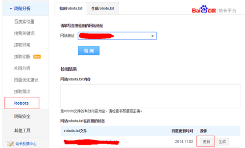如果看到robots內(nèi)容和你更改后的內(nèi)容不一致,有幾種可能:第一種可能是網(wǎng)站沒(méi)有全面布局,因?yàn)橛械恼军c(diǎn)服務(wù)器可能在很多地方,你需要確認(rèn)robots是否已全部推送;第二種可能是百度沒(méi)有及時(shí)做更新,可以通過(guò)robots檢測(cè)工具下方的更新按鈕來(lái)告訴百度Robots有變化。