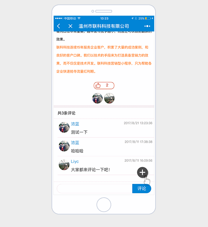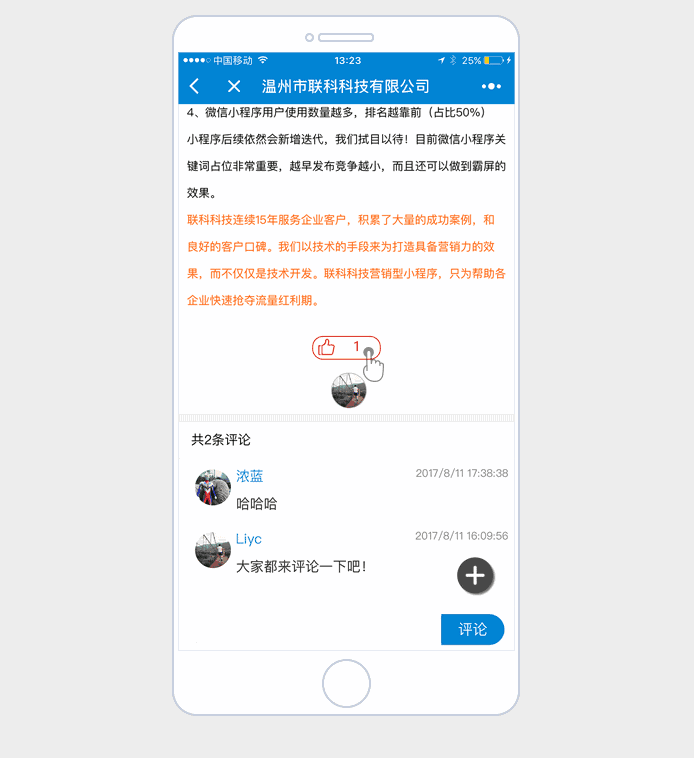 實現(xiàn)對某篇文章或內容進行點贊并統(tǒng)計,與用戶產生交互關系,提高用戶粘度。
