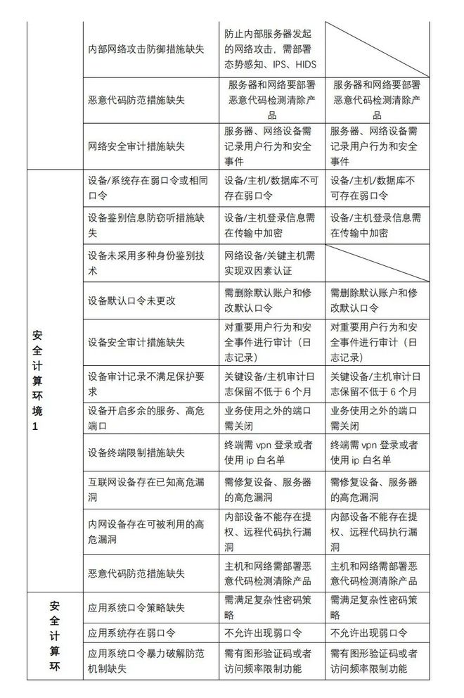 本文參考了《T/ISEAA 001-2020 網(wǎng)絡(luò)安全等級(jí)保護(hù)測評(píng)高風(fēng)險(xiǎn)判定指引》,整理出了等保三級(jí)、二級(jí)所需產(chǎn)品和要求。研發(fā)或運(yùn)維人員通過該表可直觀了解自己的系統(tǒng)與等保要求存在的差距,并做出相應(yīng)整改。